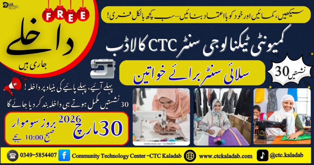 CTC Completed Projects Alhamdulillah! These projects have been successfully completed with transparency, teamwork, and community support. CTC Kaladab continues to work for educational growth, social welfare, and community empower سلائی سنٹر میں داخلے جاری More Details رمضان سستا بازار More Details اصلاح نماز پروگرام More Details Free Olive Trees Project More Details Free Fruit Trees Distribution More Details Free Women Dress Cutting Course More Details Free Computer Courses More Details Breast & Uterus Cancer Awareness in Women More Details Free Books Distribution in Government Schools More Details Ramzan Special Meat Offer More Details